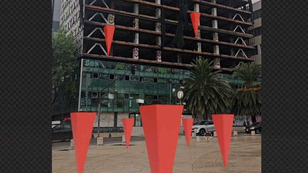 A partir del entorno real grabado, creamos geometría aproximada (como piso o colisiones) para que los emojis interactúen físicamente con el espacio.